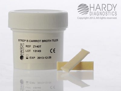 Strep B Carrot Broth Tiles, Hardy Diagnostics – Z140T, Jar of 20 tiles, Strep B CarrotBroth Tiles