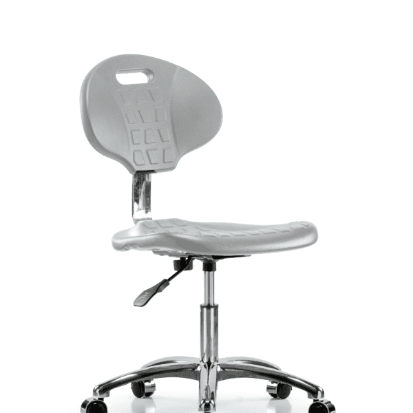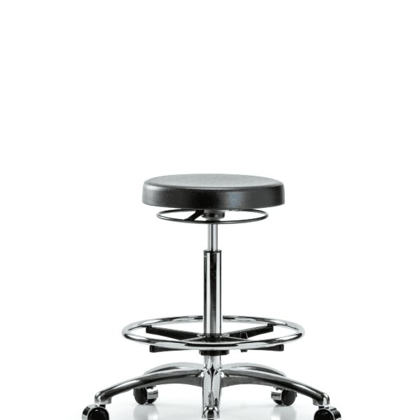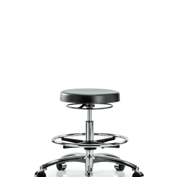 Class 10 Polyurethane Clean Room Stool – High Bench Height with Chrome Foot Ring & Stationary Glides