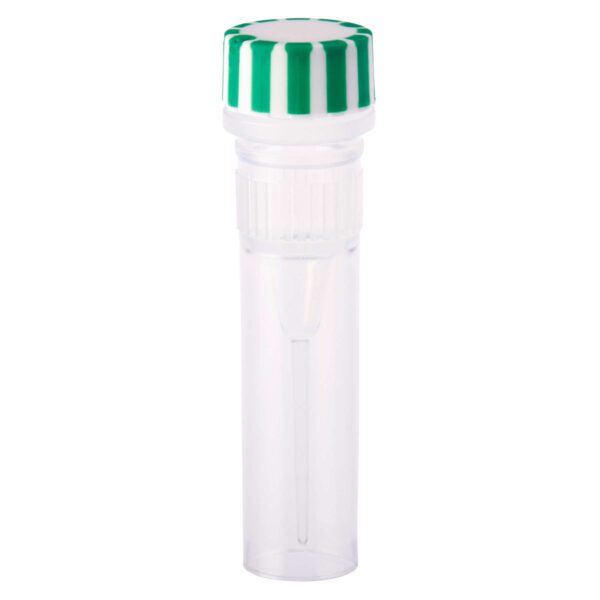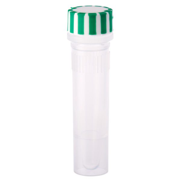 2.0mL Screw Top Micro Tube and Cap, Self-Standing, Grip Band, Green Grip Cap With Integrated O-Ring, Sterile