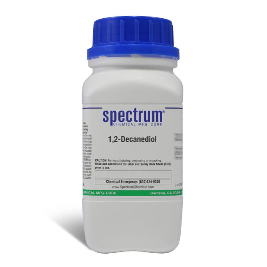 Size quantity: 1-EA Description: 1, 2-Decanediol is a skin moisturizer with excellent antimicrobial properties. Ungraded products supplied by Spectrum are indicative of a grade suitable for general industrial use or research purposes and typically are not suitable for human consumption or therapeutic use.