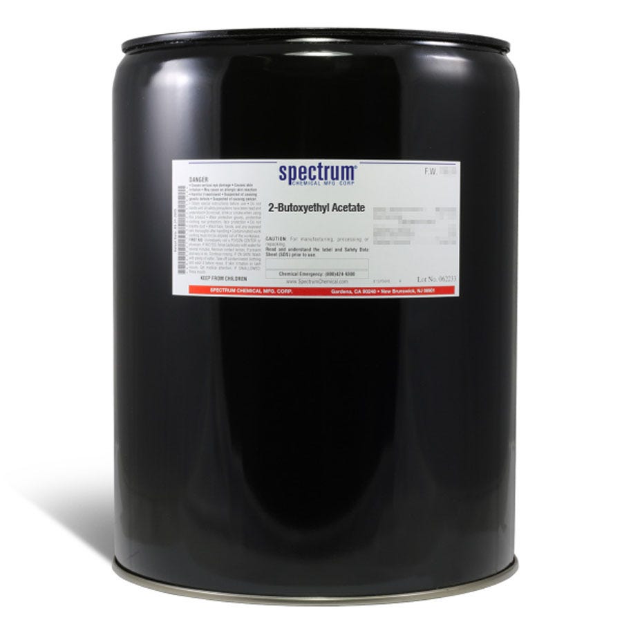 Size quantity: 1-EA Description: 2-Butoxyethyl Acetate is a solvent that is typically used in pharmaceuticals, sunscreens, cosmetics, inks, dyes and water based paints. Ungraded products supplied by Spectrum are indicative of a grade suitable for general industrial use or research purposes and typically are not suitable for human consumption or therapeutic use.