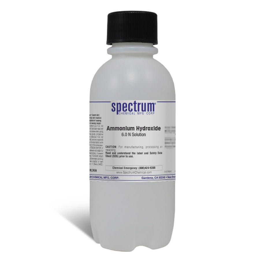 Size quantity: 1-EA Description: Ammonium Hydroxide, 6.0 N Solution, is a solution of ammonia in water. Aqueous ammonia, as it’s otherwise known is used as a complexant and base in qualitative inorganic analysis. It becomes a deep blue color with copper solutions. Used to dissolve silver oxide residues, such as the ones formed from Tollens’ reagent, it is also commonly used in numerous cleaning agents, such as window cleaning formulas as well as a complexant that is manufactured to parts-per-billion trace impurities and has been used in the semiconductor industry to dissolve heavy or precious metal components.