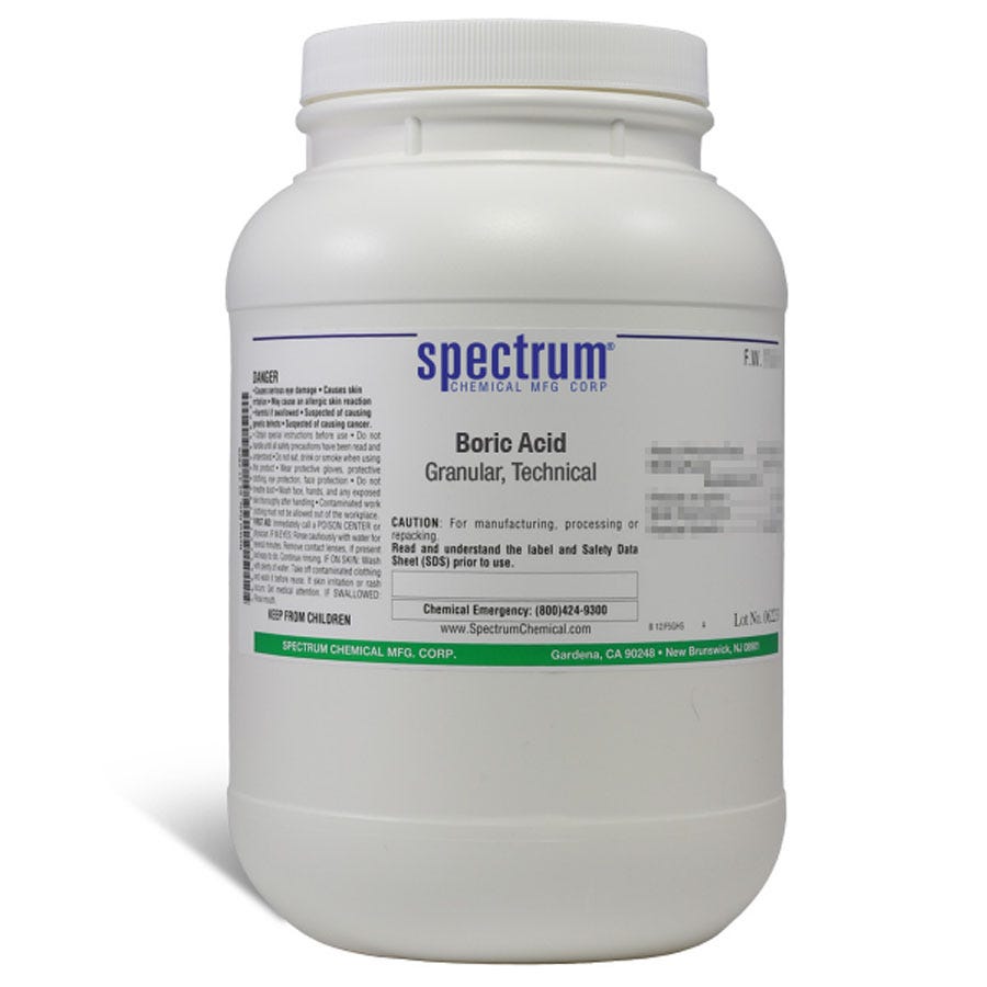 Size quantity: 1-EA Description: Boric Acid, Granular, Technical is a weak acid of boron often used as an antiseptic, insecticide, flame retardant, neutron absorber, or precursor to other chemical compounds. It exists in the form of colorless crystals or a white powder that dissolves in water. Boric acid is poisonous if taken internally or inhaled in large quantities.