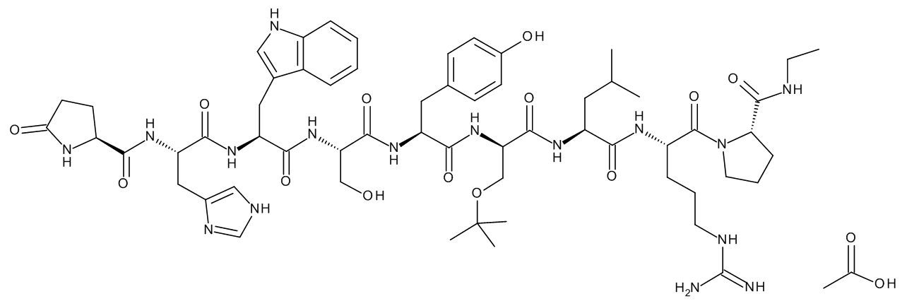 Size quantity: 1-EA Description: SMILES: CCNC(=O)[C@@H]1CCCN1C(=O)[C@H](CCCNC(=N)N)NC(=O)[C@H](CC(C)C)NC(=O)[C@@H](COC(C)(C)C)NC(=O)[C@H](Cc2ccc(O)cc2)NC(=O)[C@H](CO)NC(=O)[C@H](Cc3c[nH]c4ccccc34)NC(=O)[C@H](Cc5c[nH]cn5)NC(=O)[C@@H]6CCC(=O)N6.CC(=O)O Purity: >95% (HPLC)
