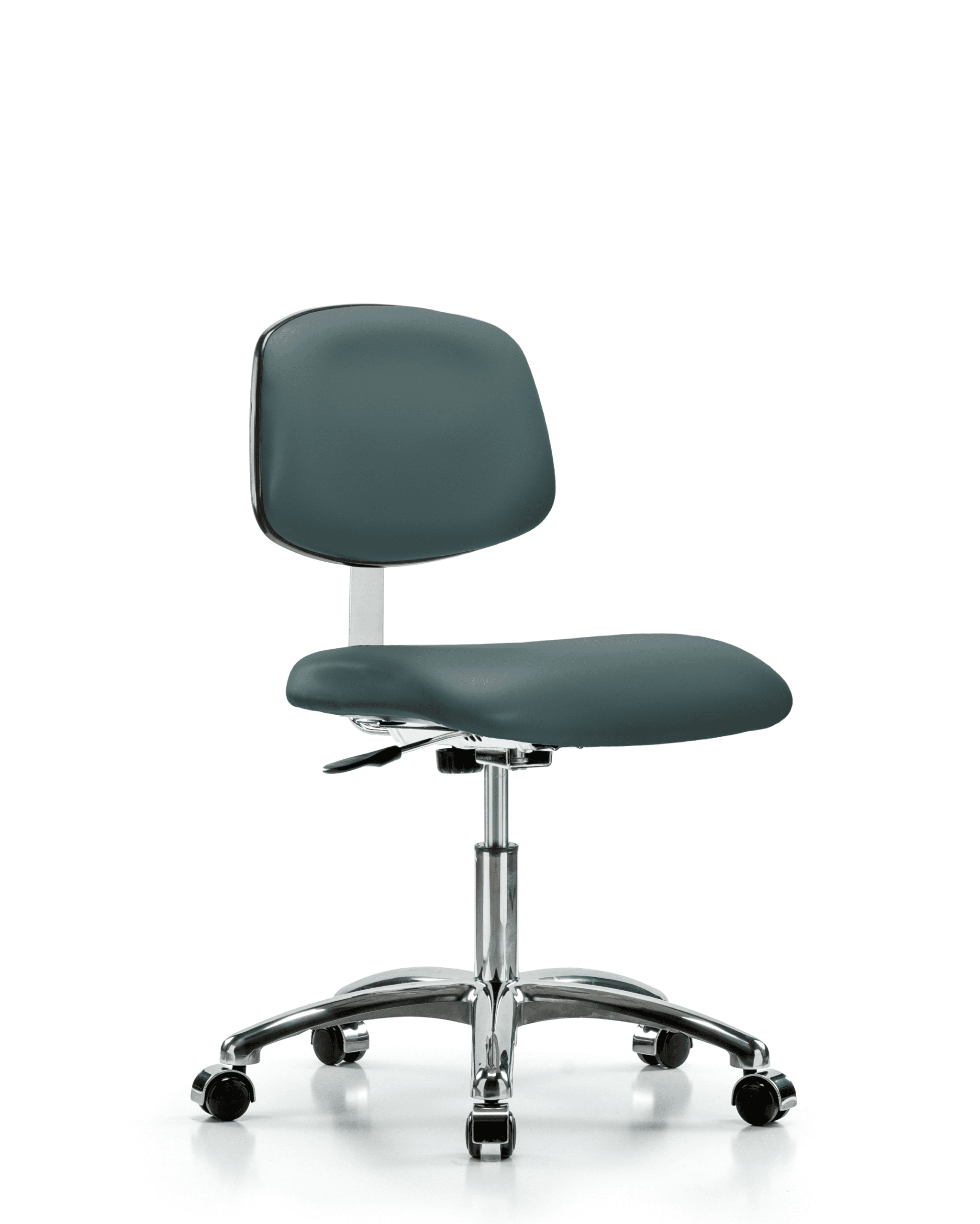 Class 10 Clean Room Vinyl Chair Chrome – Desk Height with Casters in Colonial Blue Trailblazer Vinyl