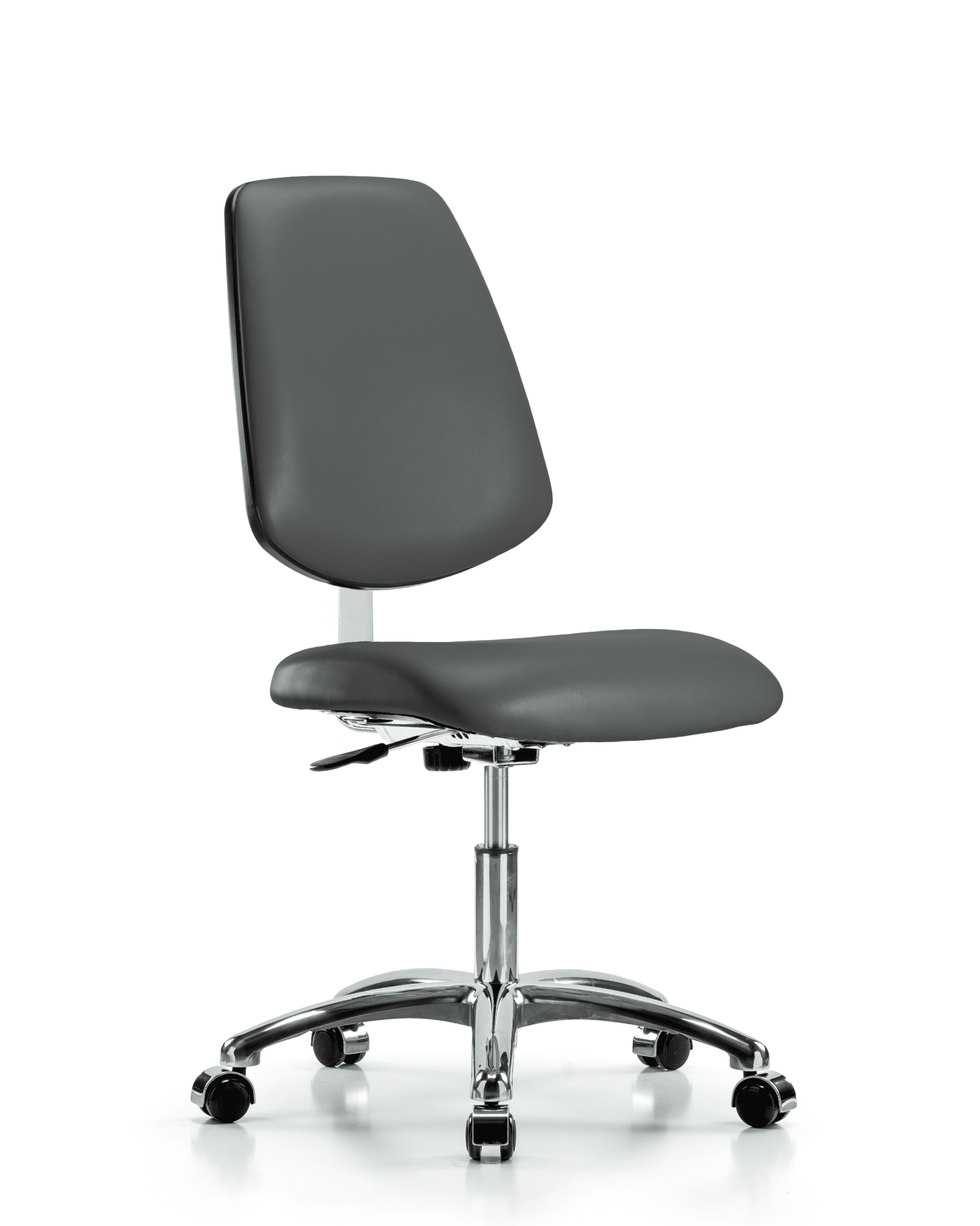 Class 10 Clean Room Vinyl Chair Chrome – Desk Height with Medium Back & Casters in Carbon Supernova Vinyl