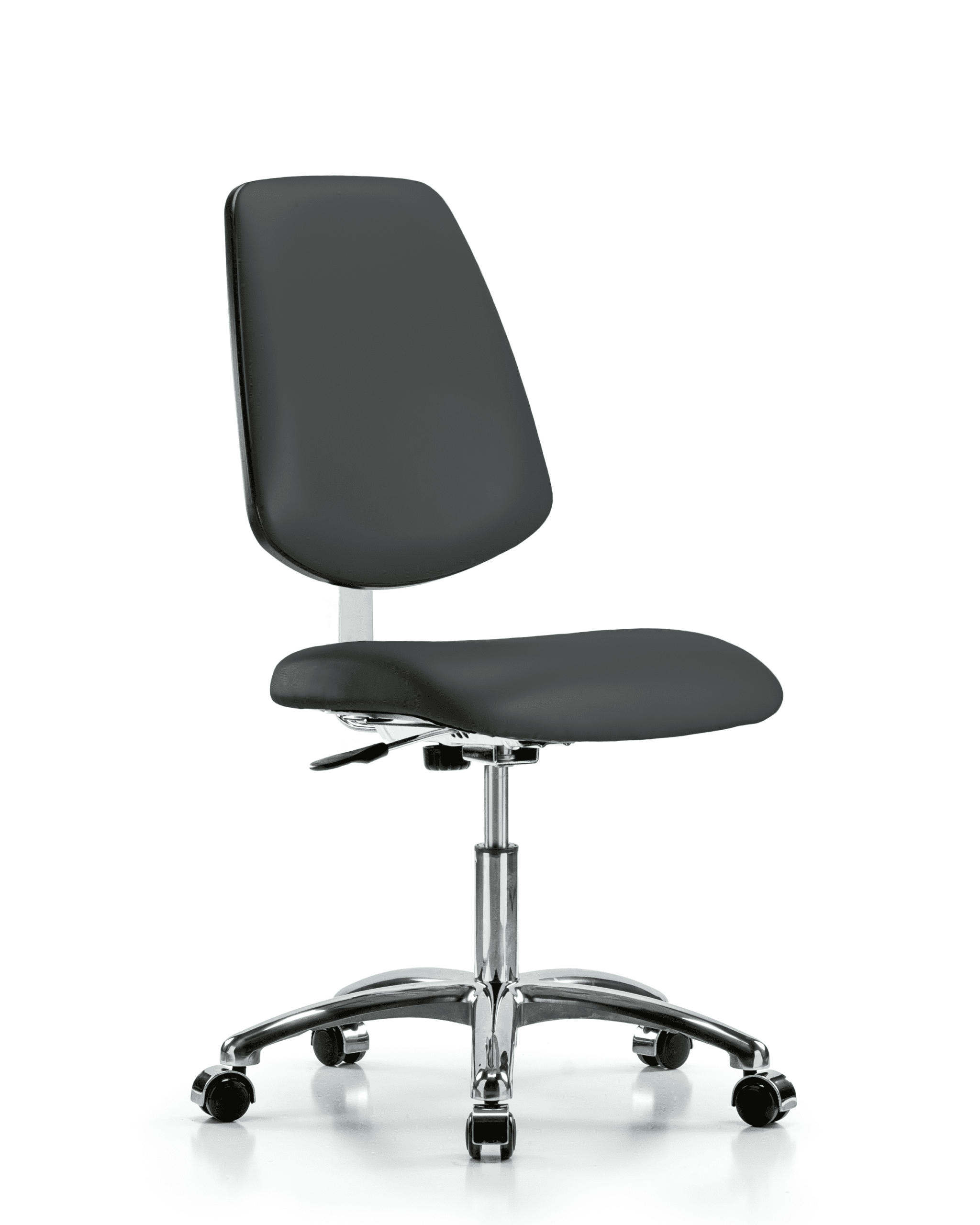 Class 10 Clean Room Vinyl Chair Chrome – Desk Height with Medium Back & Casters in Charcoal Trailblazer Vinyl