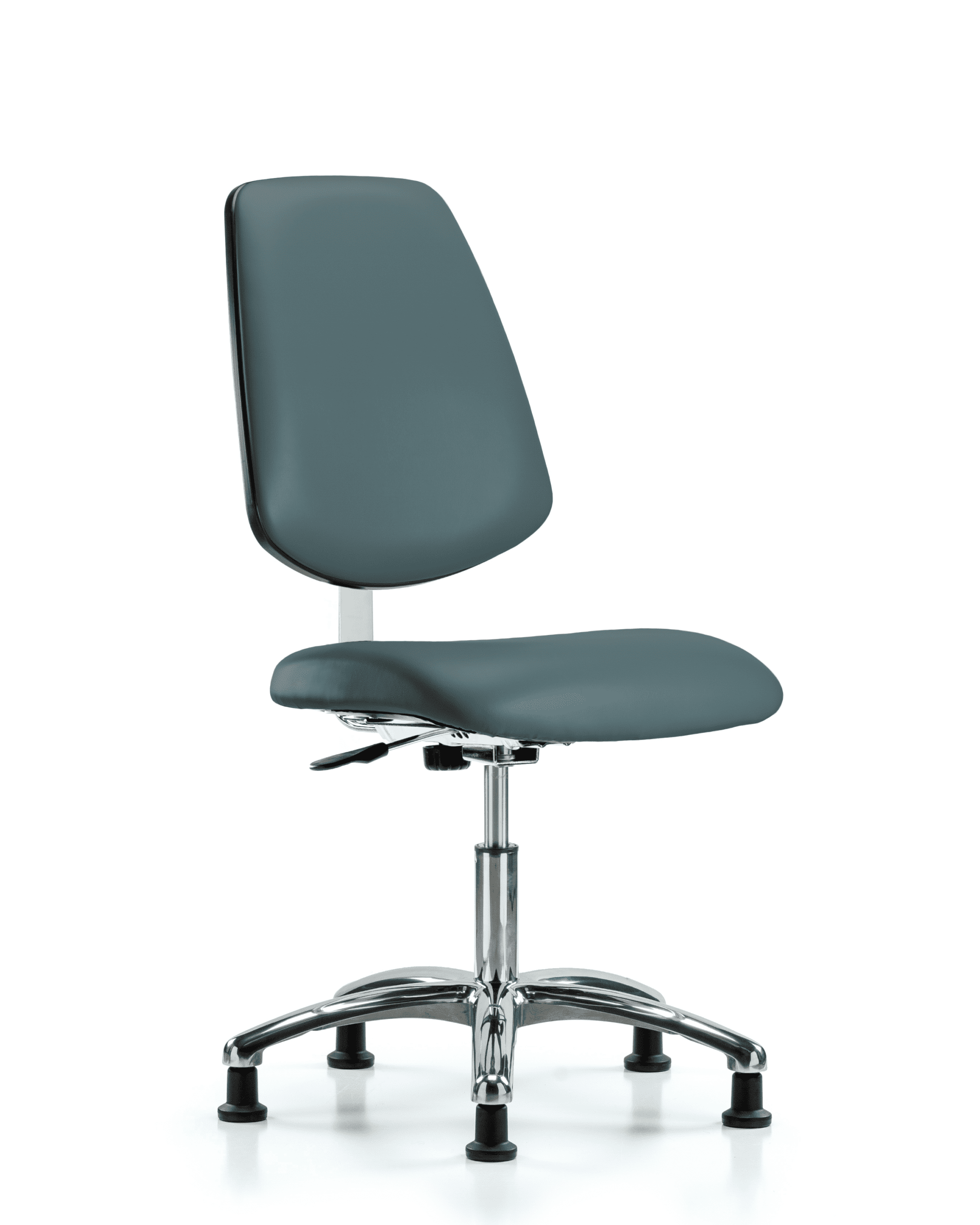 Class 10 Clean Room Vinyl Chair Chrome – Desk Height with Medium Back & Stationary Glides in Colonial Blue Trailblazer Vinyl