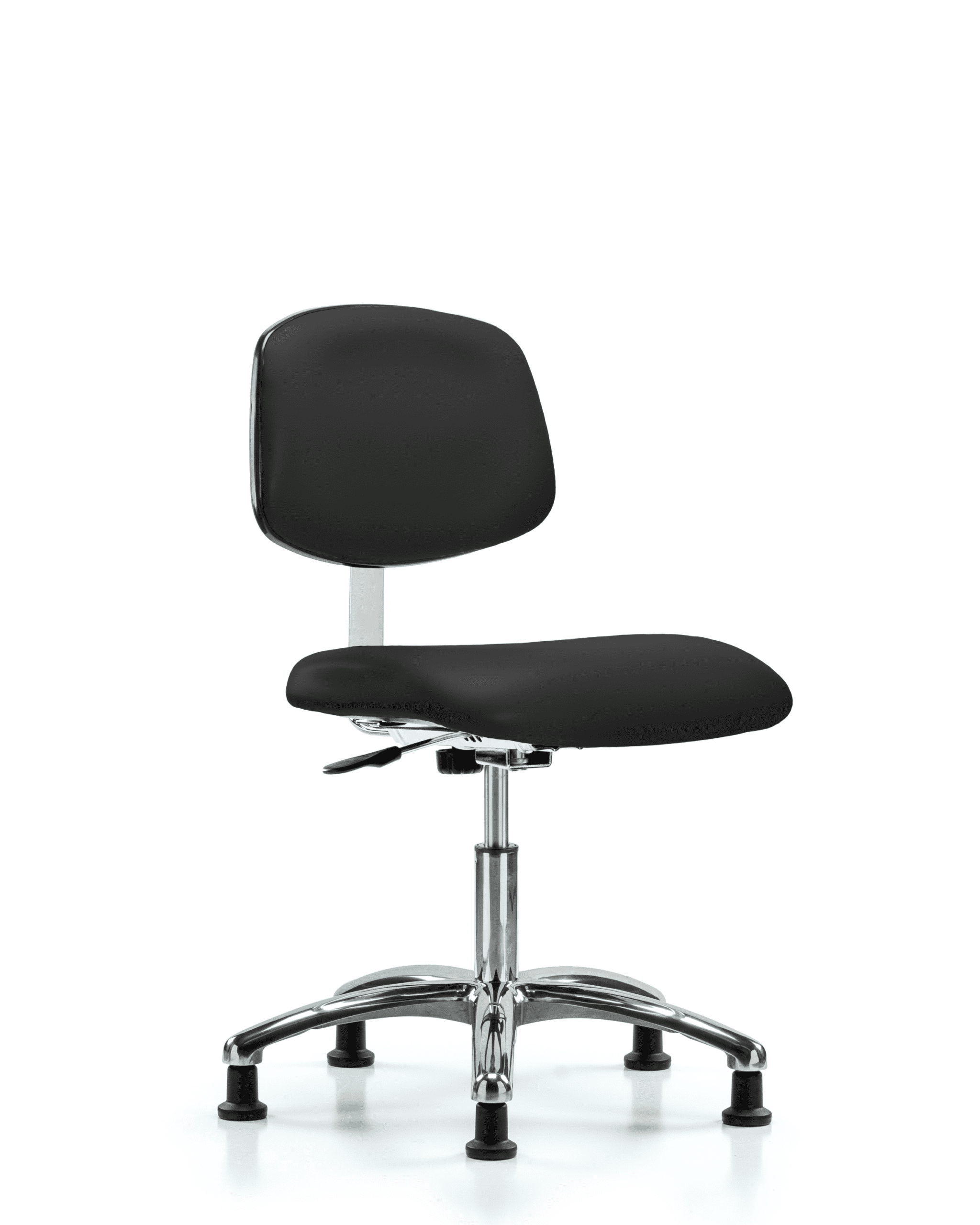 Class 10 Clean Room Vinyl Chair Chrome – Desk Height with Stationary Glides in Black Trailblazer Vinyl