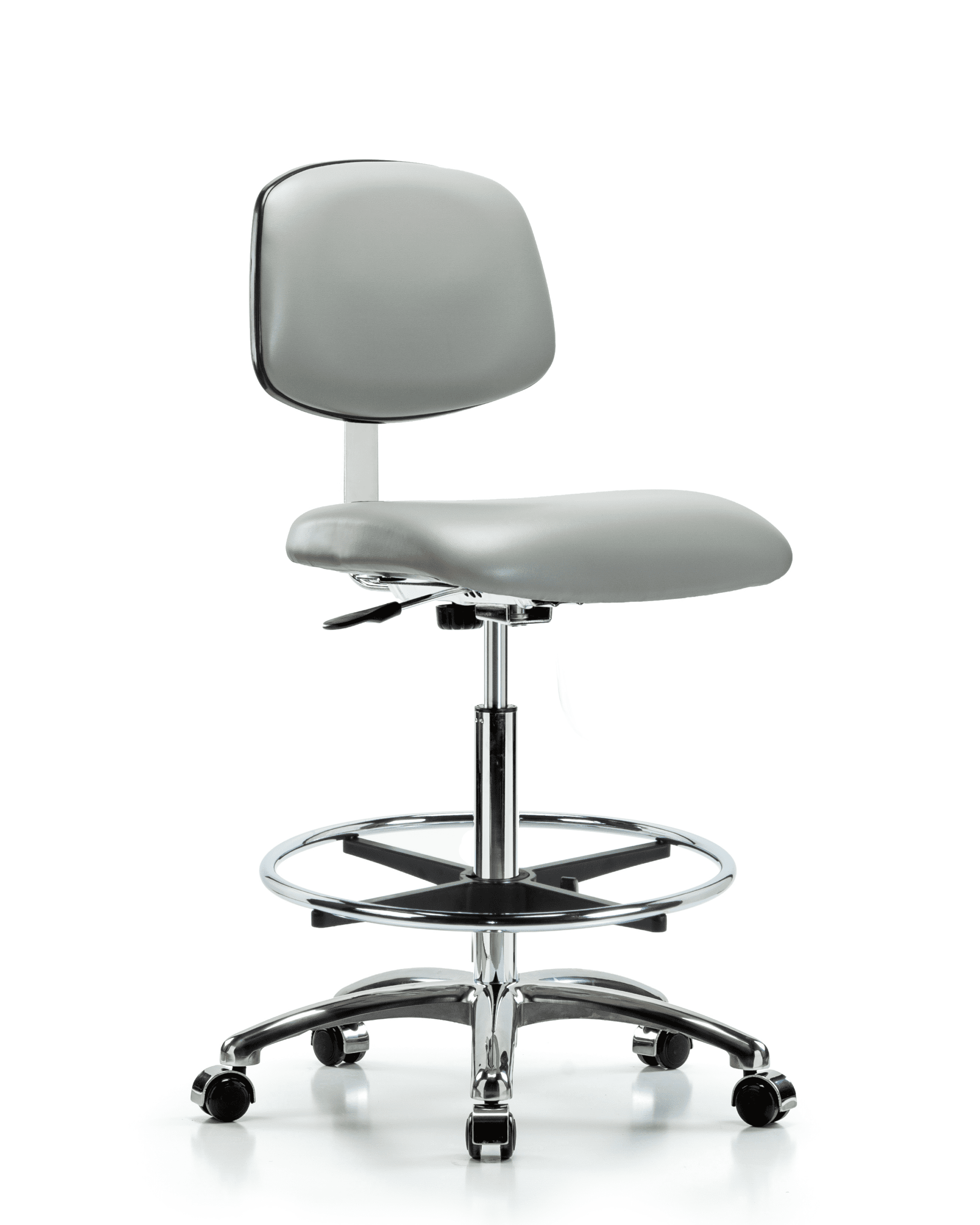 Class 10 Clean Room Vinyl Chair Chrome – High Bench Height with Chrome Foot Ring & Casters in Dove Trailblazer Vinyl