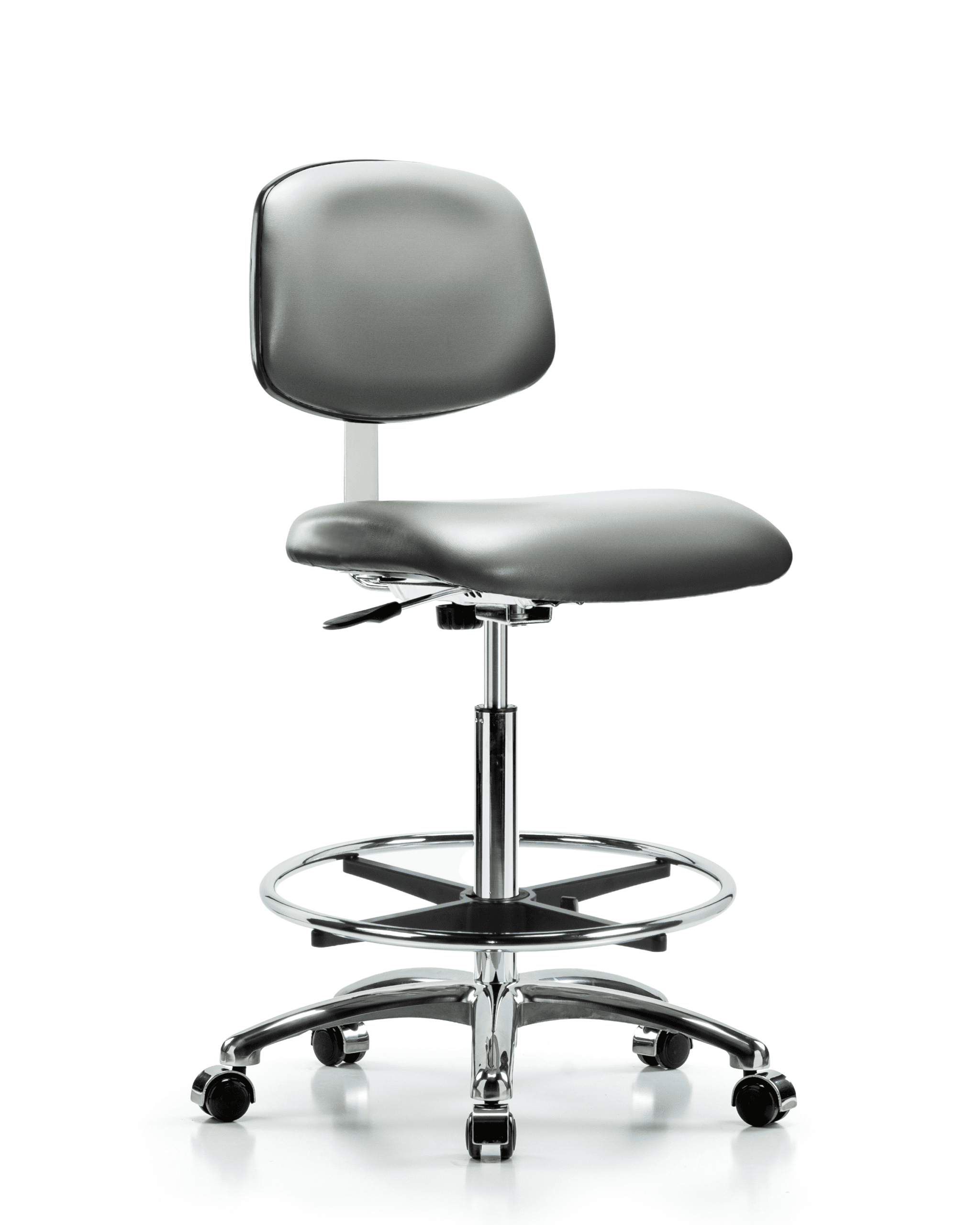 Class 10 Clean Room Vinyl Chair Chrome – High Bench Height with Chrome Foot Ring & Casters in Sterling Supernova Vinyl