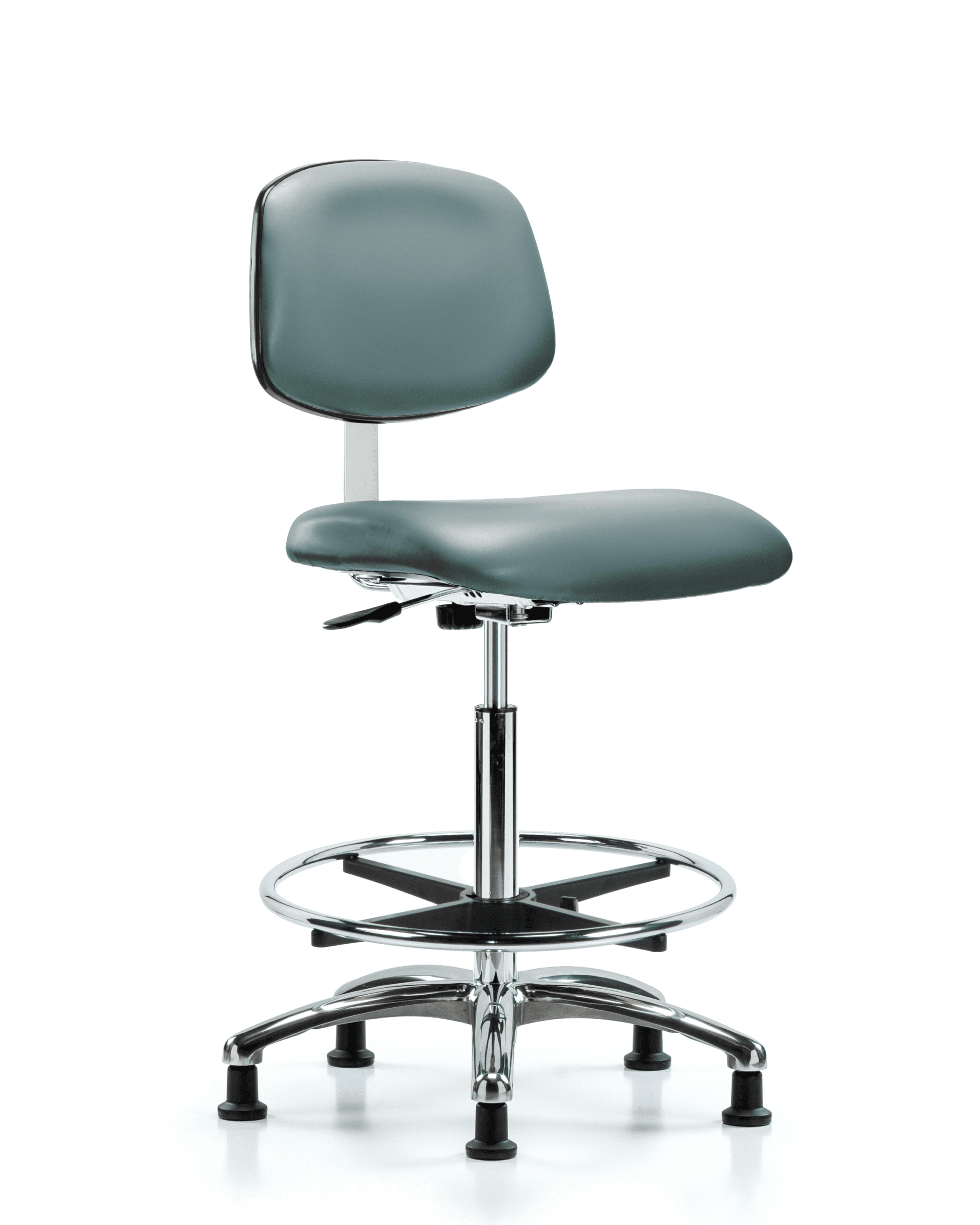 Class 10 Clean Room Vinyl Chair Chrome – High Bench Height with Chrome Foot Ring & Stationary Glides in Storm Supernova Vinyl
