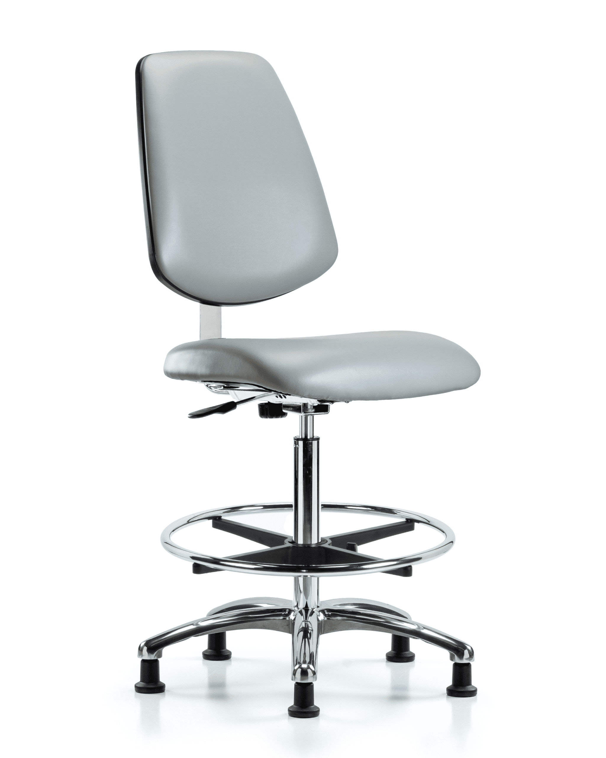 Class 10 Clean Room Vinyl Chair Chrome – High Bench Height with Medium Back, Chrome Foot Ring, & Stationary Glides in Dove Trailblazer Vinyl