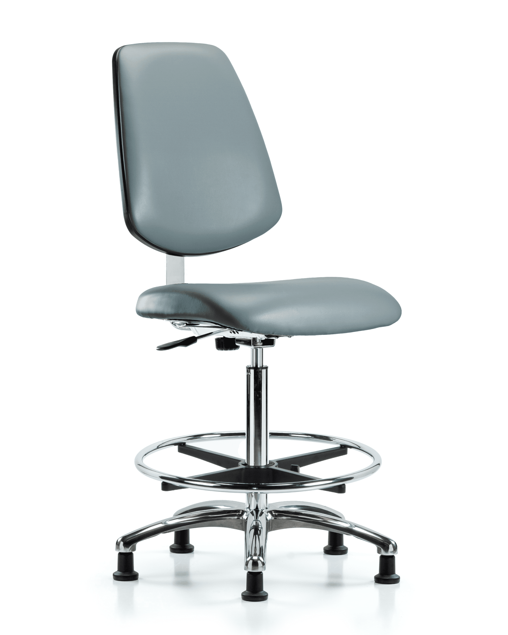 Class 10 Clean Room Vinyl Chair Chrome – High Bench Height with Medium Back, Chrome Foot Ring, & Stationary Glides in Storm Supernova Vinyl