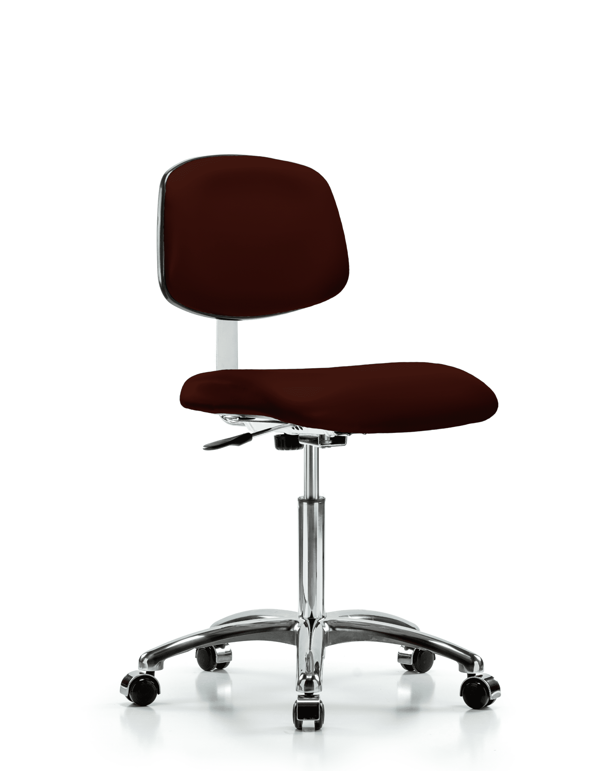 Class 10 Clean Room Vinyl Chair Chrome – Medium Bench Height with Casters in Burgundy Trailblazer Vinyl