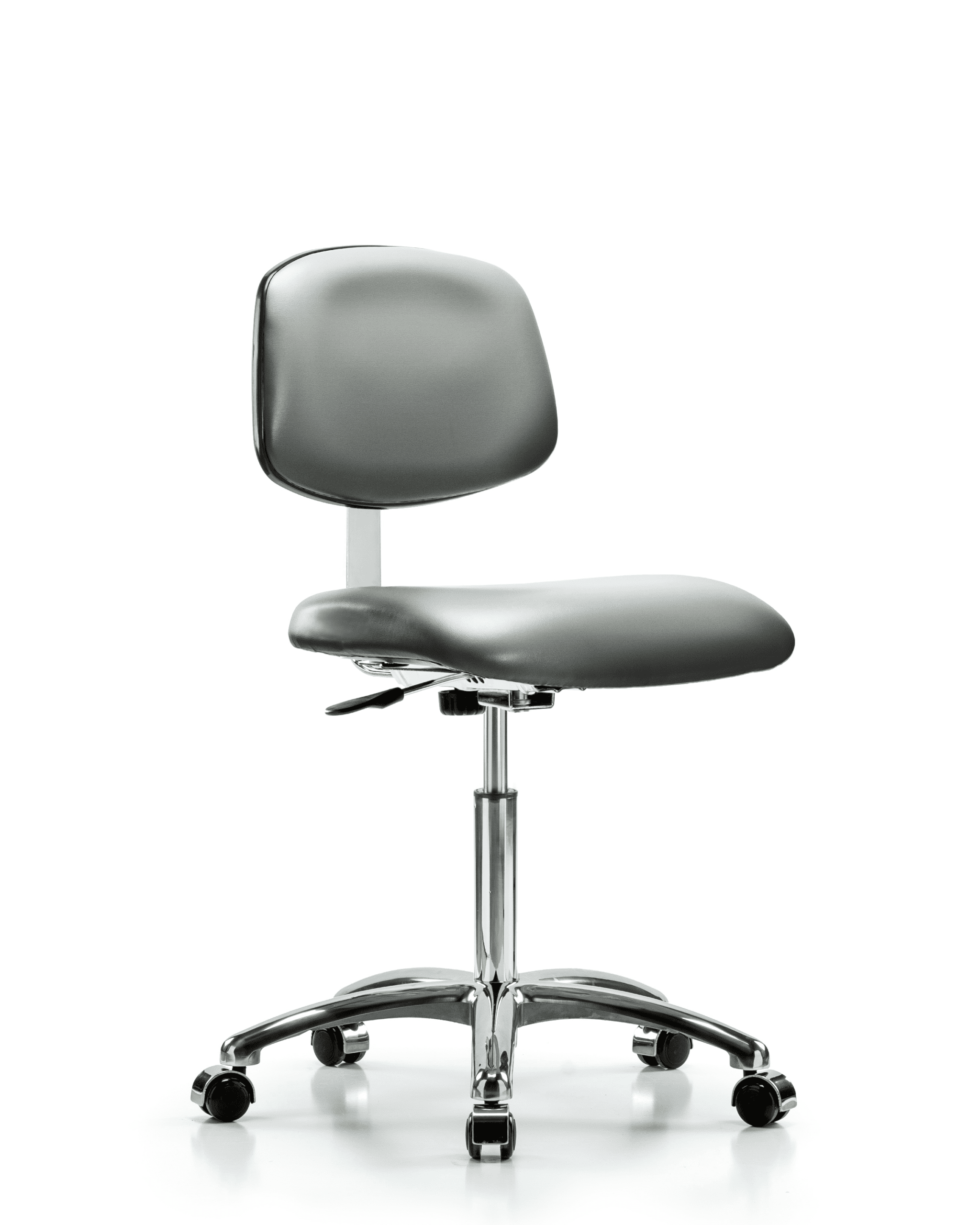 Class 10 Clean Room Vinyl Chair Chrome – Medium Bench Height with Casters in Sterling Supernova Vinyl