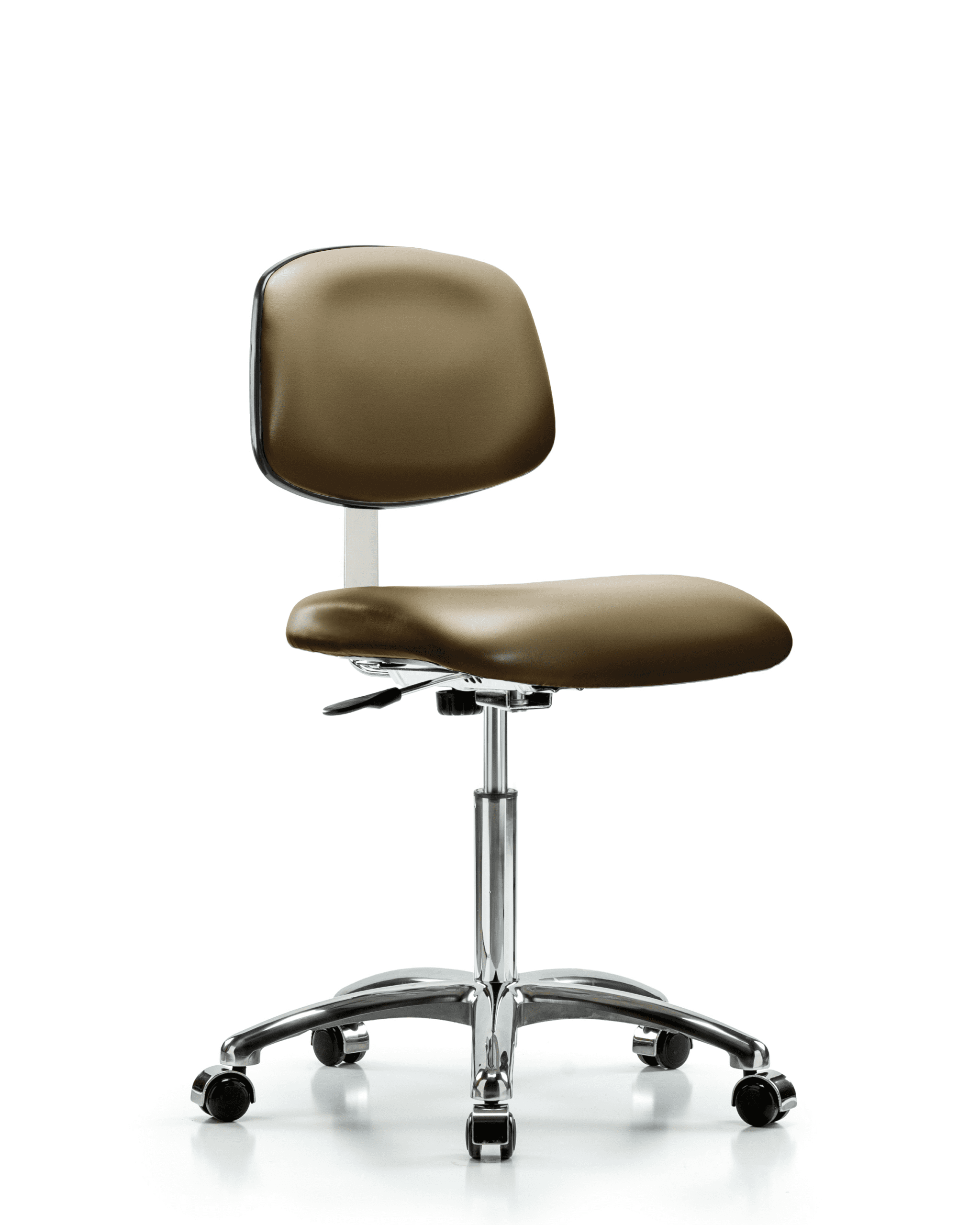 Class 10 Clean Room Vinyl Chair Chrome – Medium Bench Height with Casters in Taupe Supernova Vinyl