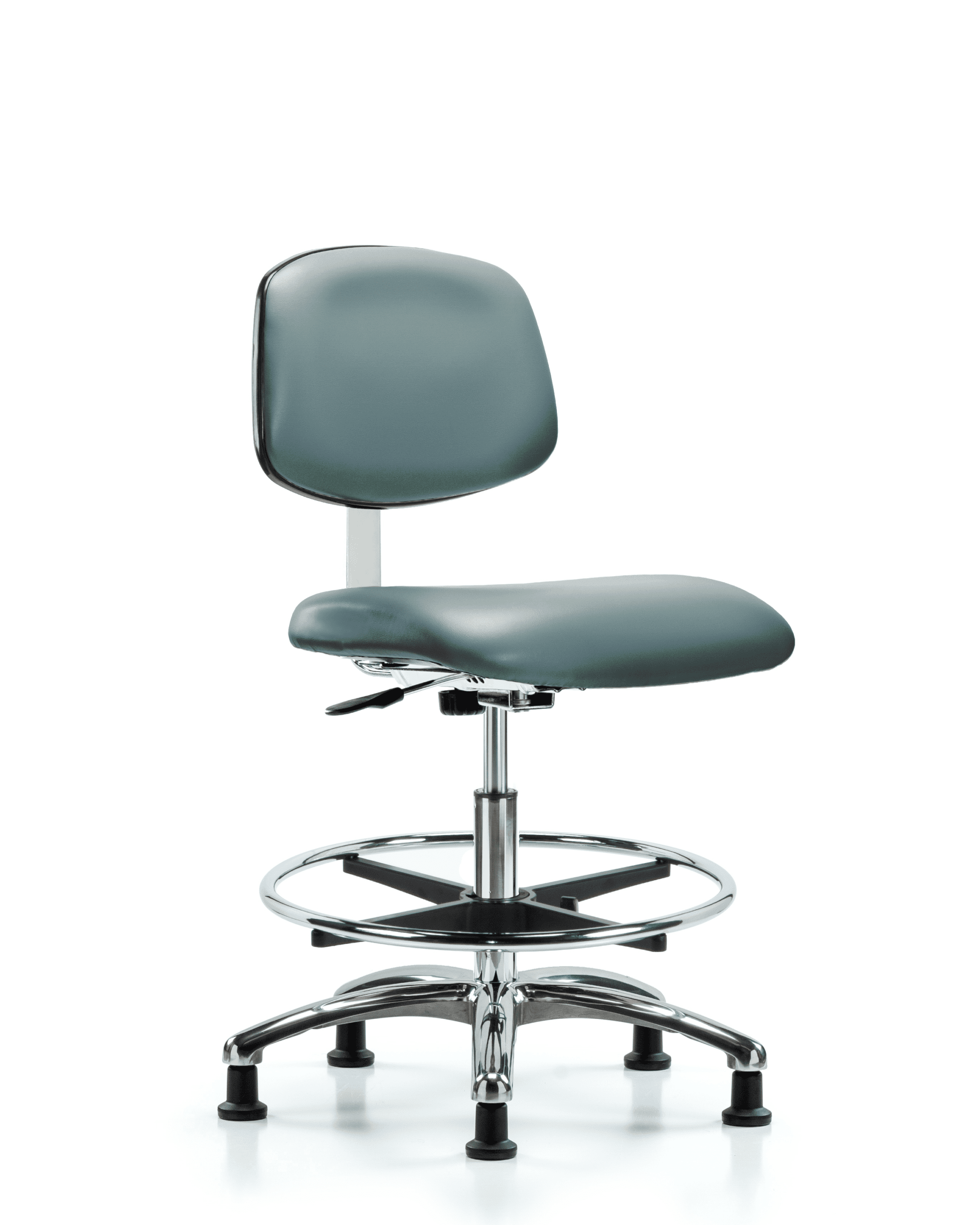 Class 10 Clean Room Vinyl Chair Chrome – Medium Bench Height with Chrome Foot Ring & Stationary Glides in Storm Supernova Vinyl