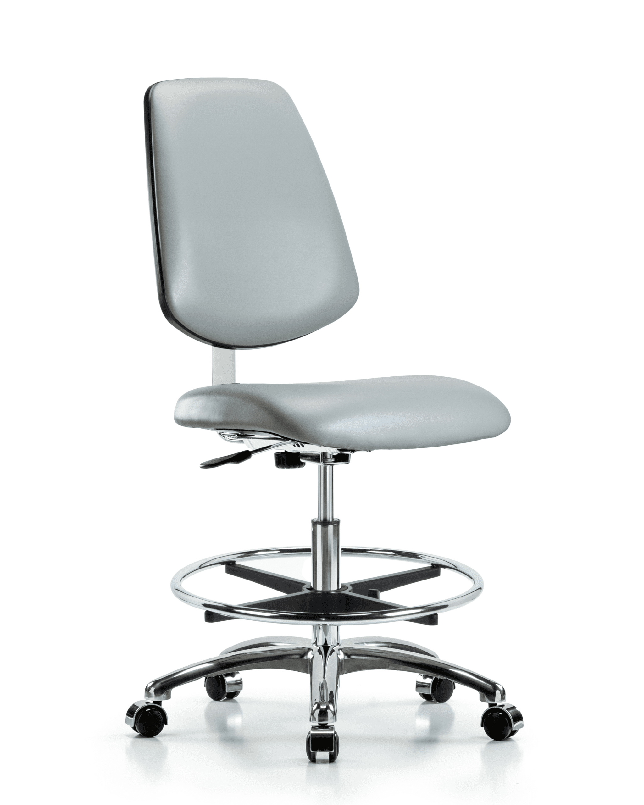 Class 10 Clean Room Vinyl Chair Chrome – Medium Bench Height with Medium Back, Chrome Foot Ring, & Casters in Dove Trailblazer Vinyl