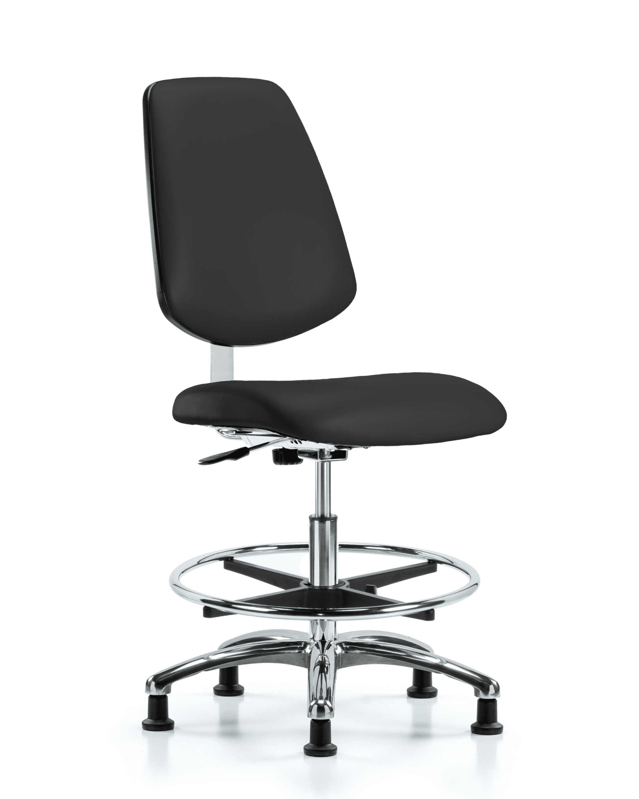 Class 10 Clean Room Vinyl Chair Chrome – Medium Bench Height with Medium Back, Chrome Foot Ring, & Stationary Glides in Black Trailblazer Vinyl