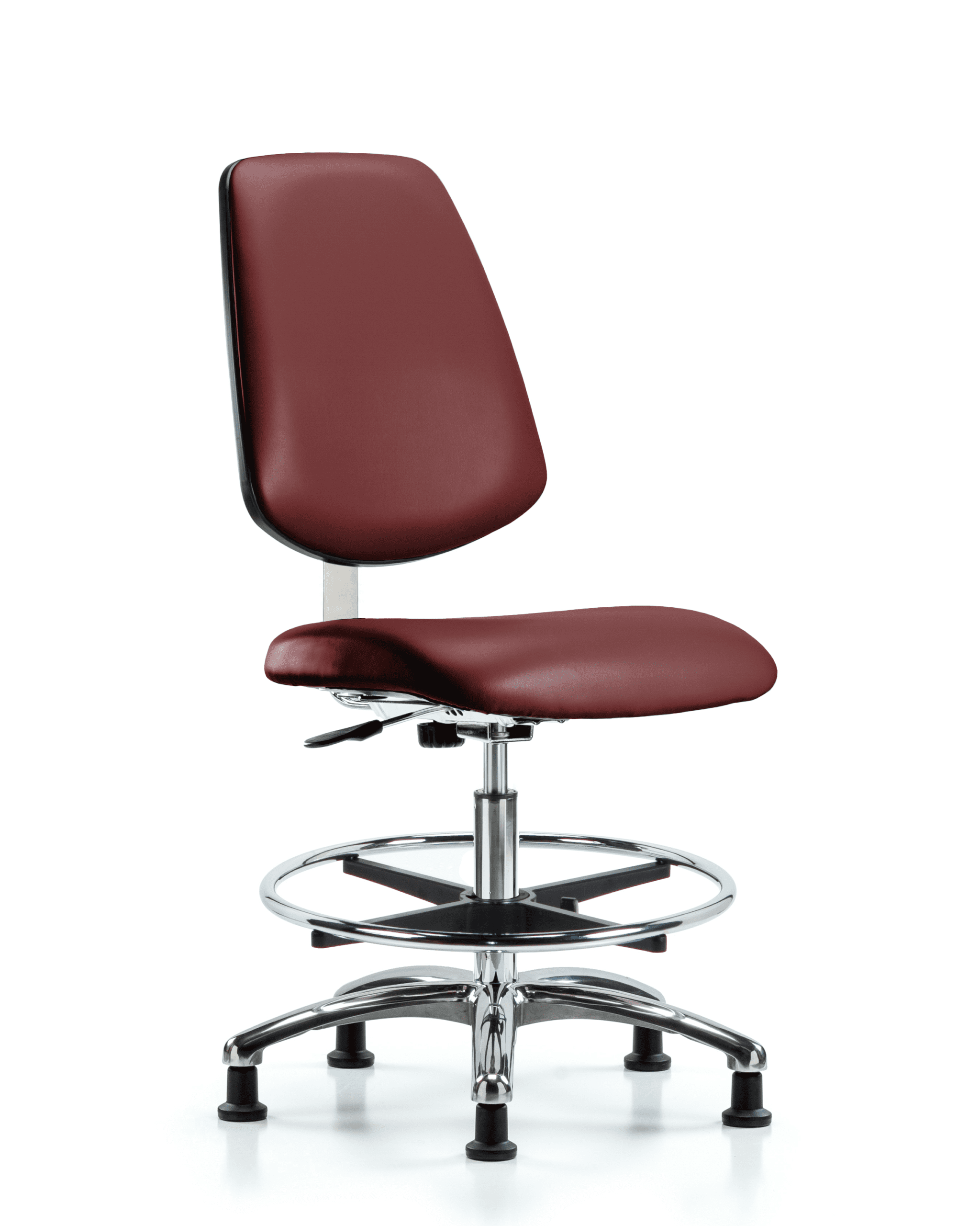 Class 10 Clean Room Vinyl Chair Chrome – Medium Bench Height with Medium Back, Chrome Foot Ring, & Stationary Glides in Borscht Supernova Vinyl