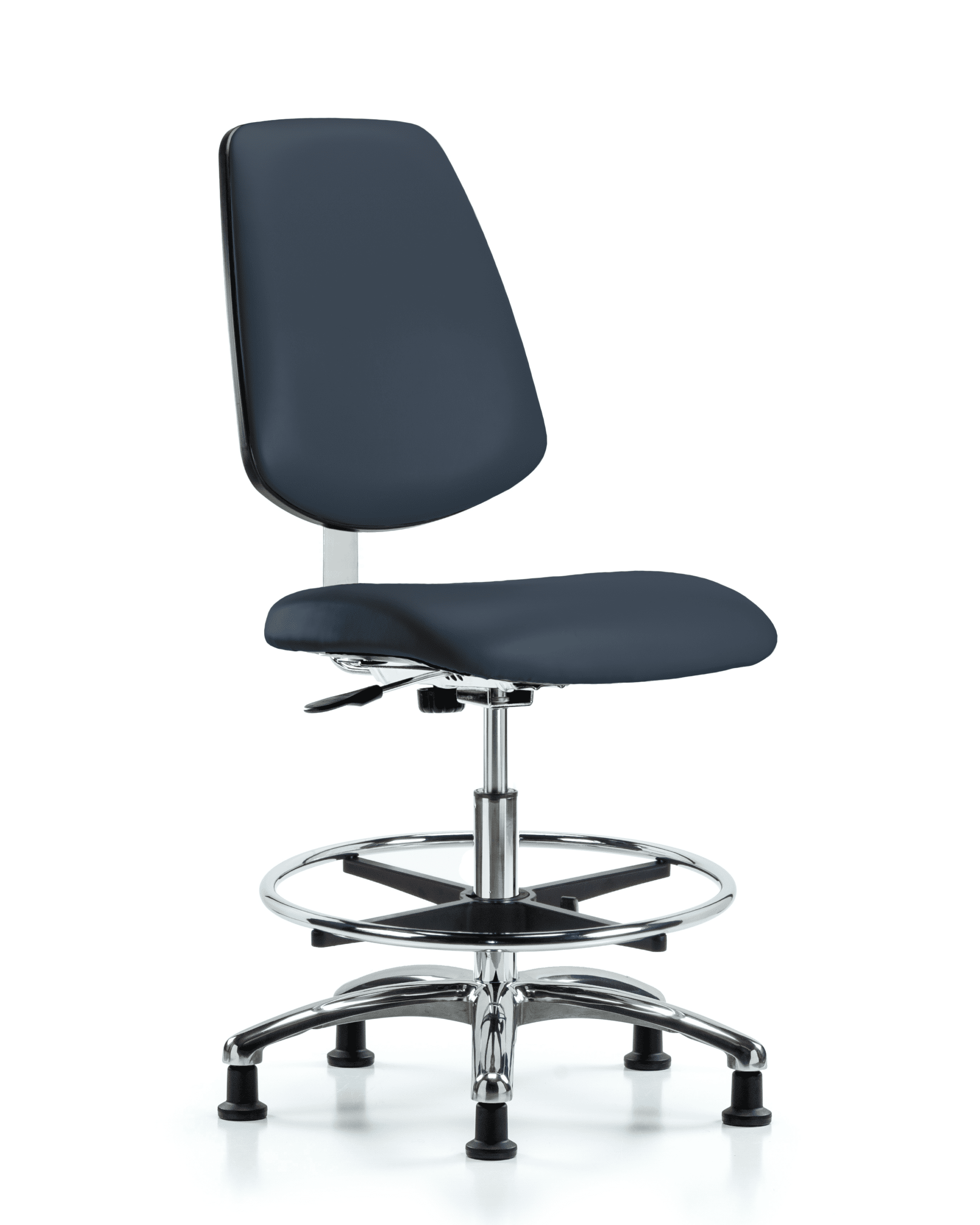 Class 10 Clean Room Vinyl Chair Chrome – Medium Bench Height with Medium Back, Chrome Foot Ring, & Stationary Glides in Imperial Blue Trailblazer Vinyl