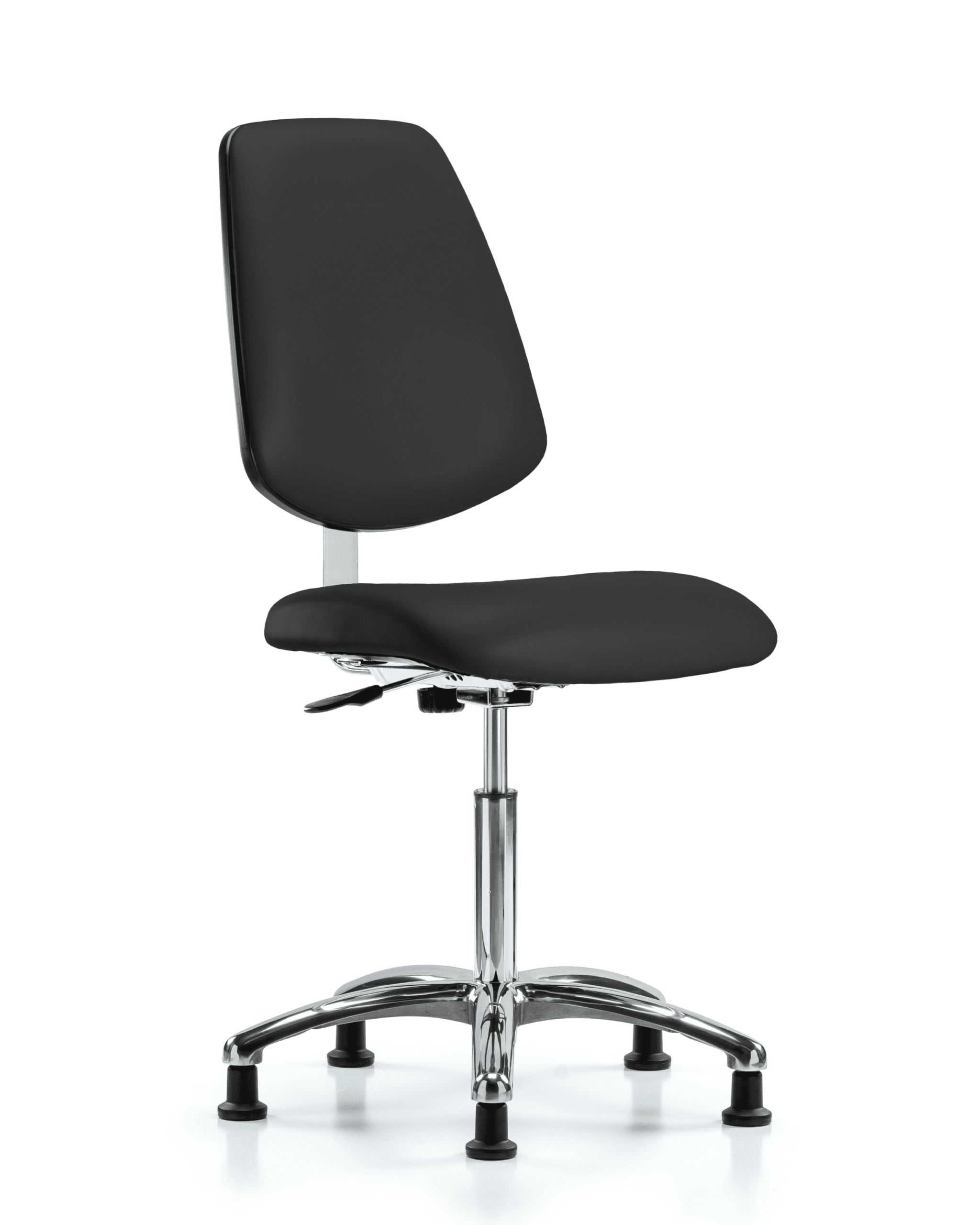 Class 10 Clean Room Vinyl Chair Chrome – Medium Bench Height with Medium Back & Stationary Glides in Black Trailblazer Vinyl