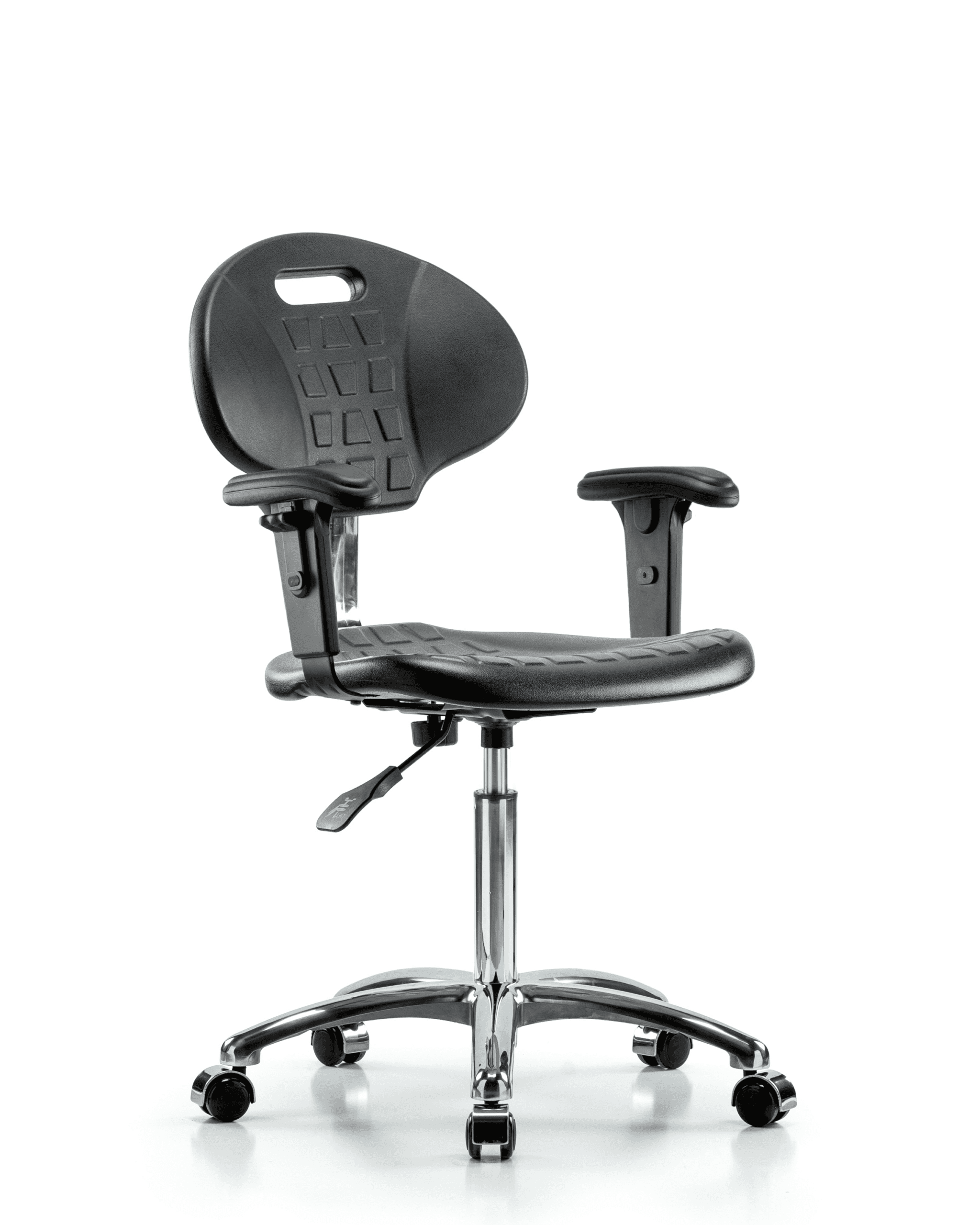 Class 100 Erie Polyurethane Clean Room Chair – Medium Bench Height with Adjustable Arms & Casters in Black Polyurethane