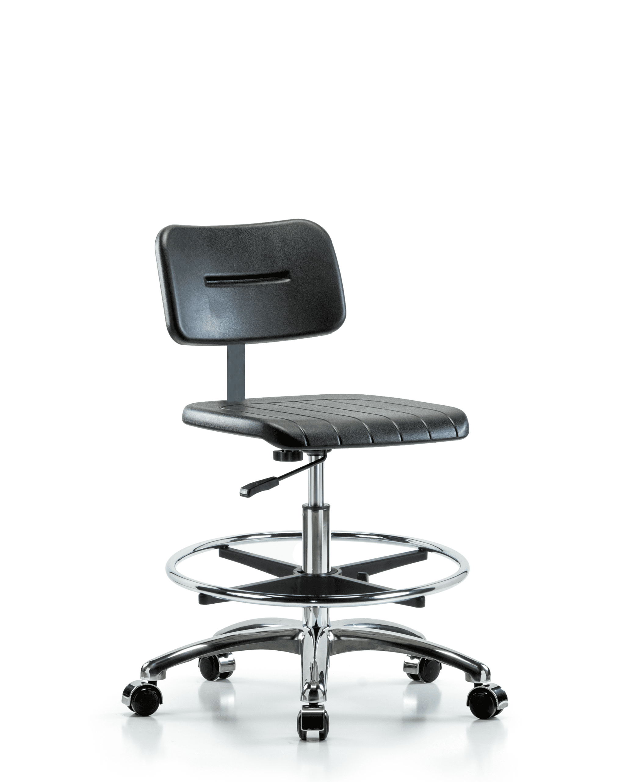 Core Polyurethane Chair Chrome – Medium Bench Height with Chrome Foot Ring & Casters