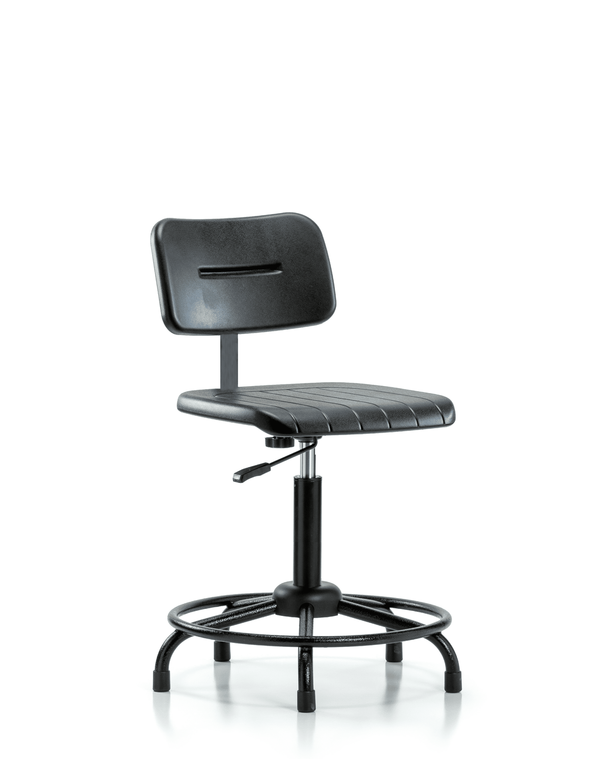 Description : Core Polyurethane Medium Bench Height Chair with Round Tube Base is adjustable from 21-28.5 inches from the top of the seat to the floor and features manual back and back depth adjustments and black, powder-coated steel base with fixed foot ring and stationary non-marring glides suitable for hard floors in chemical, soil, and puncture resistant polyurethane.