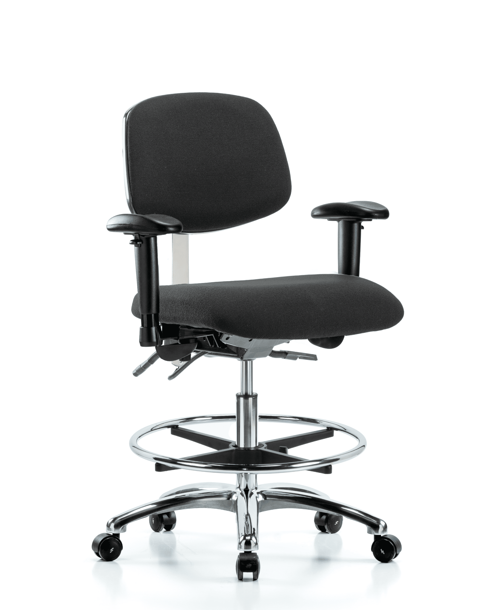 Fabric ESD Chair – Medium Bench Height with Seat Tilt, Adjustable Arms, Chrome Foot Ring, & ESD Casters in ESD Black Fabric