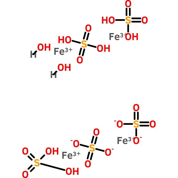 Size quantity: 1-EA Description: Ferric Subsulfate, Powder, Purified is a yellow rhombic crystalline salt that is water soluble. It is used in industrial waste processing as a coagulant and as a pigment in pickling baths for steel and aluminum.