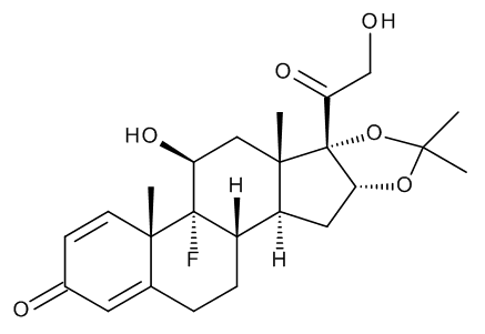Triamcinolone acetonide 100 ug/mL in Methanol SMILES : CC1(C)O[C@@H]2C[C@H]3[C@@H]4CCC5=CC(=O)C=C[C@]5(C)[C@@]4(F)[C@@H](O)C[C@]3(C)[C@@]2(O1)C(=O)CO