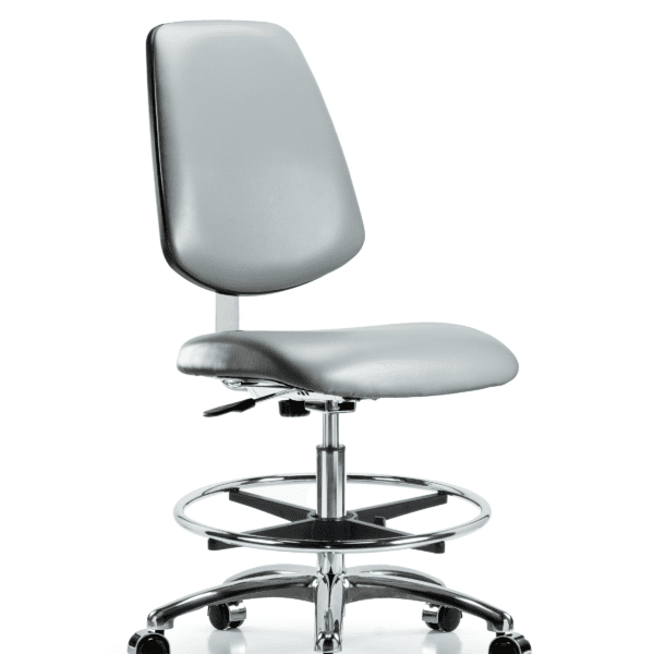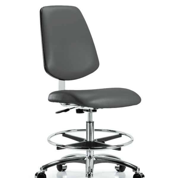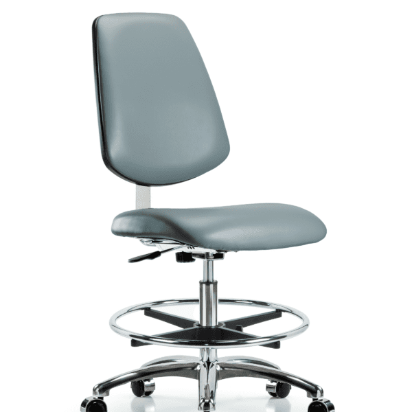 Class 10 Clean Room Vinyl Chair Chrome – Medium Bench Height with Medium Back, Chrome Foot Ring, & Casters in Sterling Supernova Vinyl
