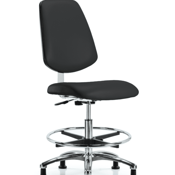 Class 10 Clean Room Vinyl Chair Chrome – Medium Bench Height with Medium Back, Chrome Foot Ring, & Stationary Glides in Black Trailblazer Vinyl