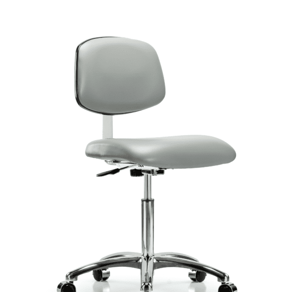 Class 10 Clean Room Vinyl Chair Chrome – Medium Bench Height with Casters in Borscht Supernova Vinyl